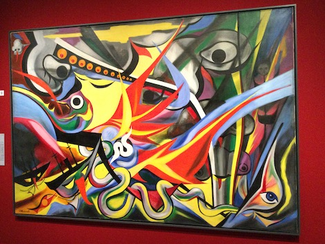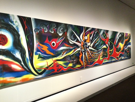 原爆が炸裂する瞬間を描いた『明日の神話』は、岡本太郎の最高傑作とも云われています (出展されているのは残された4枚の下絵のうちの最もサイズが大きい4枚目。実物の壁画は現在、東京・渋谷駅構内に掲げられています)。人々が燃え上がり、溶け落ち、苦悶の表情を見せる。しかしながら彼は、そうした地獄から立ち上がる人類の力強さをも描き出しています。そこには、パリ留学時代に巨匠パブロ・ピカソの作品と相対し、「グンと一本の棒を呑み込まされたように」(『青春ピカソ』より) 金縛りとなり、滂沱の涙を流した彼の、『ゲルニカ』に対する嫉妬と対抗心が見て取れます。