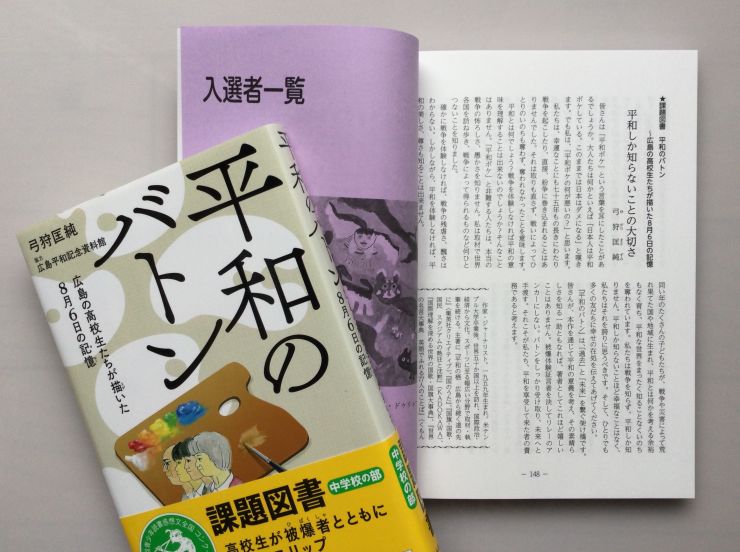 拙著『平和のバトン〜広島の高校生たちが描いた8月6日の記憶』の感想文を書いて下さった市立竜南中学校一年の女子(「『平和のバトン』を読んで」)が〔愛知県優良作品〕に、市立常磐中学校三年の男子(「バトンを永遠に」)が〔岡崎市優良作品〕にそれぞれ選ばれました。また、盲学校 聾学校 特別支援学校からは、県立岡崎聾学校 中学部二年の女子が「本がくれた戦争の怖さ」と題された感想文をしたためて下さいました。
