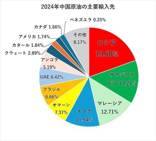 中華人民共和国の主な原油輸入元 (2024年)